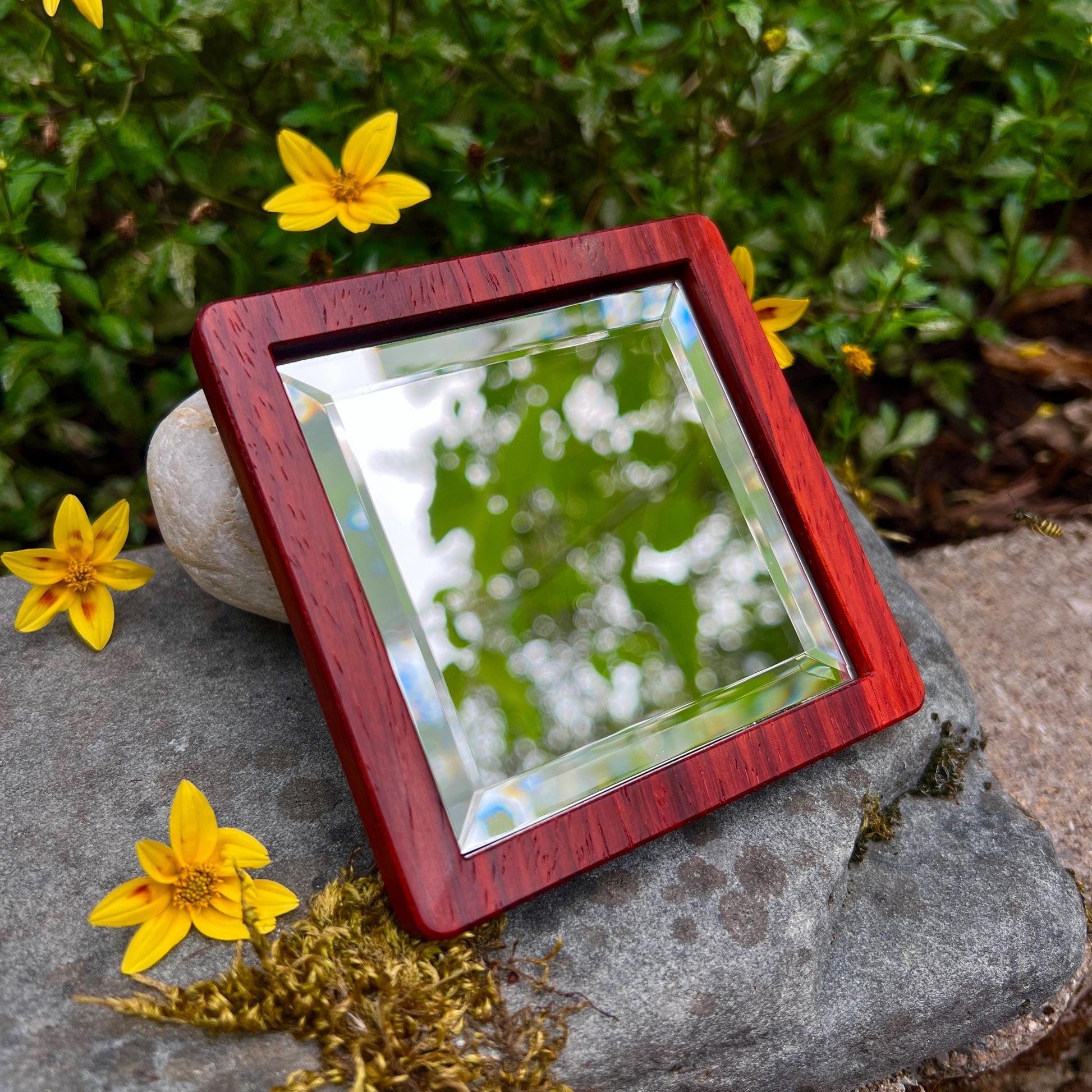 Stay ready wherever you go with this handmade pocket makeup mirror, crafted from beautiful African padauk. Designed to be both stylish and functional, this compact mirror is small enough to slip into your purse, bag, or pocket, making it the perfect travel accessory or everyday carry essential.